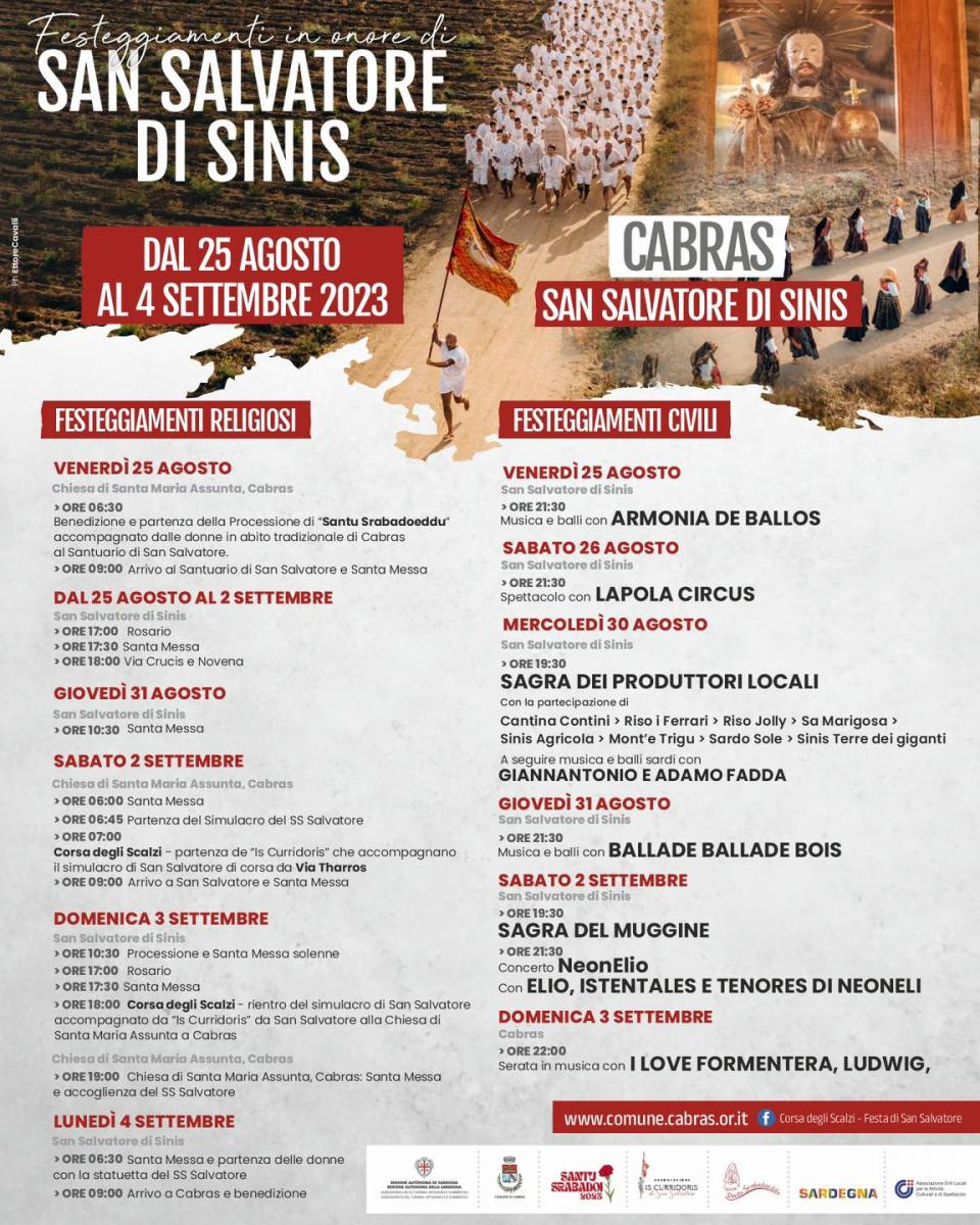 A Cabras, ogni primo fine settimana di Settembre si celebra una corsa unica e particolare, la Corsa degli Scalzi, in onore di San Salvatore che culmina con l'arrivo nel piccolo borgo marinaresco di San Salvatore di Sinis.